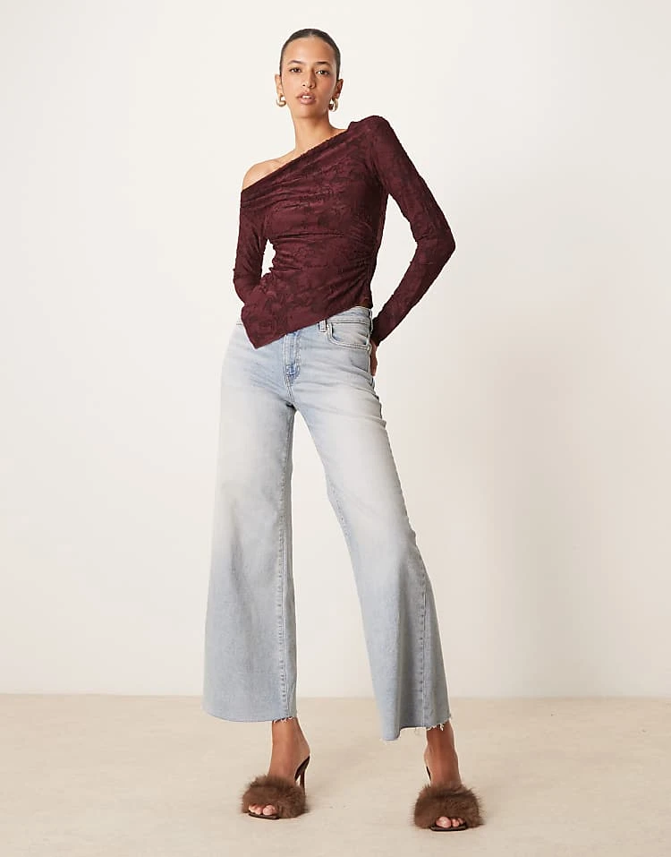 Gina Tricot Long Sleeve Jersey Top With Bow Tie Detail Front In Soft Lilac Pink For Women Soft Pink