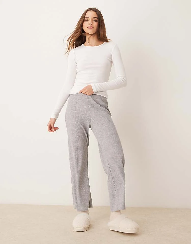 Gina Tricot Mix And Match Pointelle Embroidered Edge Cotton Pyjamas With Blue Bows In Grey Melange