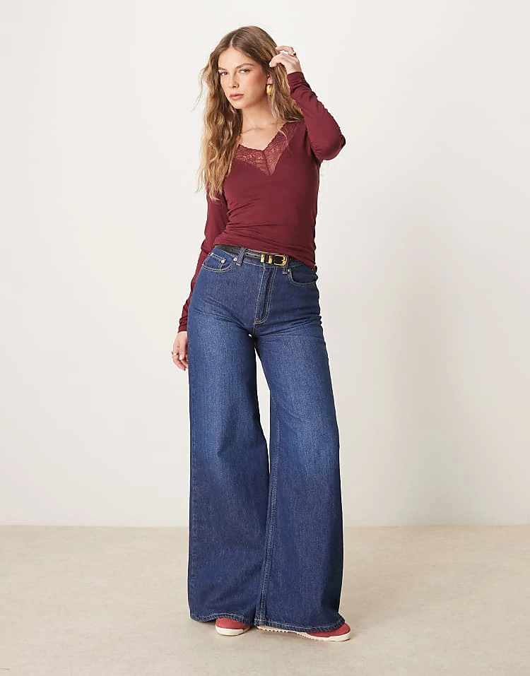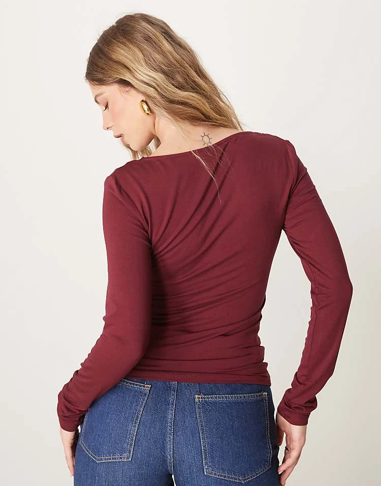 Gina Tricot Long Sleeve Jersey Top With Bow Tie Detail Front In Soft Lilac Pink For Women Soft Pink