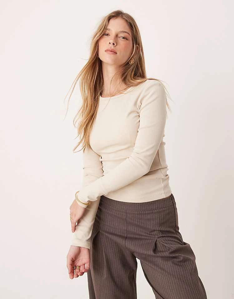 Gina Tricot Mix & Match Jersey Rib Round Neck Long Sleeve Top