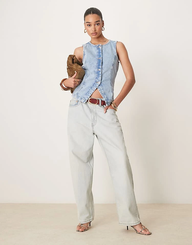 Gina Tricot Mix And Match Pointelle Embroidered Edge Cotton Pyjamas With Blue Bows In Grey Melange