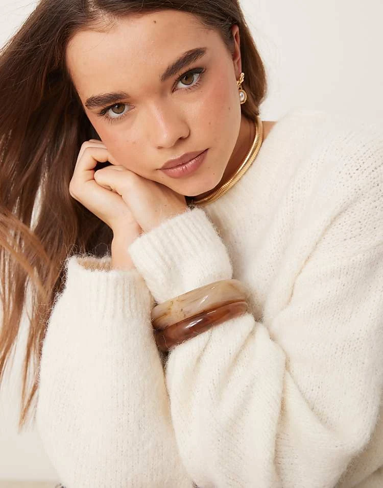 Gina Tricot Mix And Match Pointelle Embroidered Edge Cotton Pyjamas With Blue Bows In Grey Melange