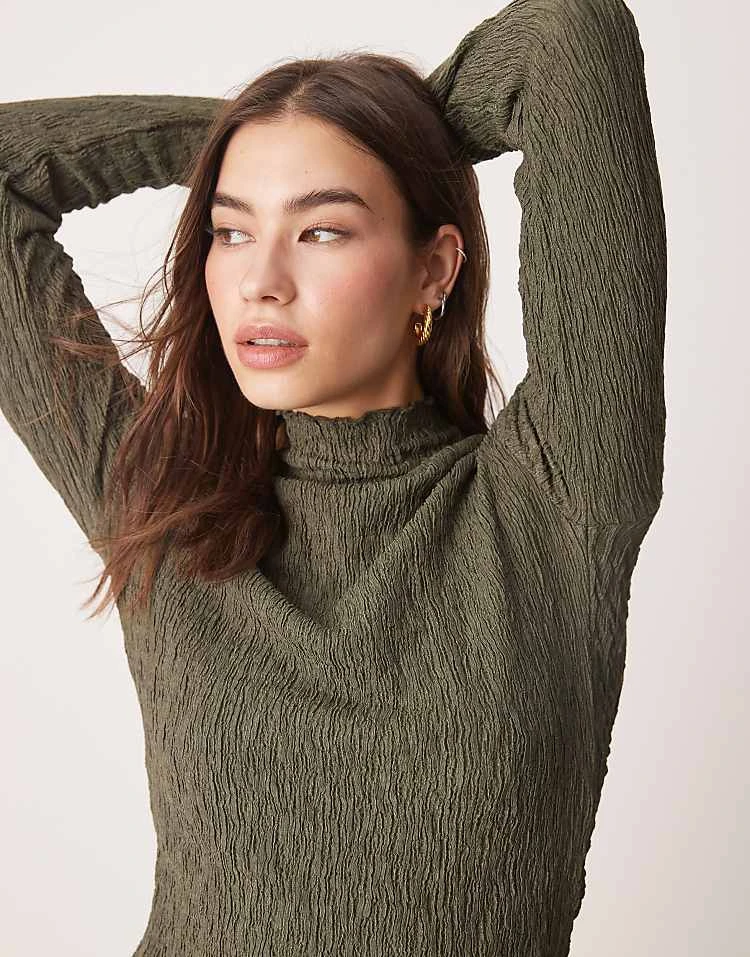 Gina Tricot Long Sleeve Jersey Top With Bow Tie Detail Front In Soft Lilac Pink For Women Soft Pink