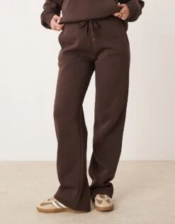 Gina Tricot Loose Fit Straight Leg Joggers In Dark Brown For Women