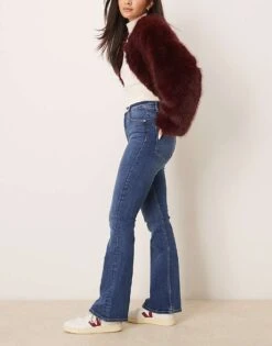 Gina Tricot Low Rise Flare Leg Jeans With Front Panel Detail In Mid Wash Blue For Women