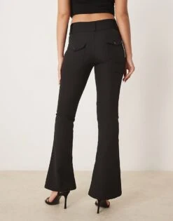 Gina Tricot Low Rise Flare Leg Trousers With Double Button Waistband In Black For Women