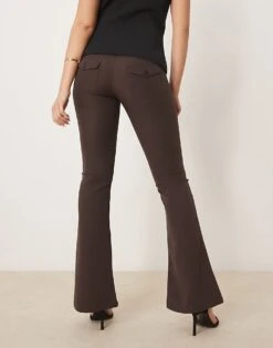 Gina Tricot Low Rise Flare Leg Stretch Trousers In Brown For Women
