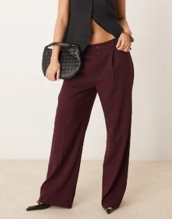 Gina Tricot Tailored Wide Leg Trousers With Pleat Front In Dark Wine Burgundy For Women