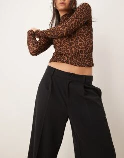 Gina Tricot Low Rise Flare Leg Trousers With Double Button Waistband In Black For Women