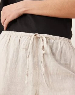 Gina Tricot Wide Leg Linen Blend Trousers With Drawstring Waist In Beige For Women White