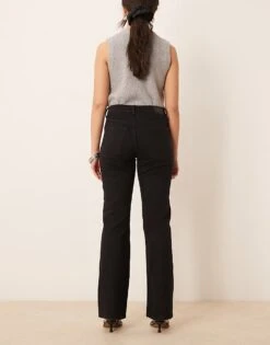 Gina Tricot Low Rise Flare Leg Stretch Trousers In Black For Women