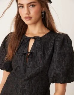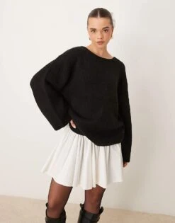 Gina Tricot Chunky Rib Knitted Sweater With Tie Back Bow Detail In Black For Women