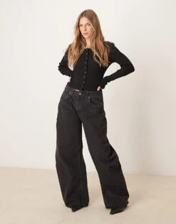 Gina Tricot Barrel Leg Jeans In Clean Indigo Blue Rinse Wash For Women Indigo Rinse Wash