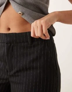 Gina Tricot Tailored Wide Leg Trousers With Flat Front In Black Pinstripe For Women