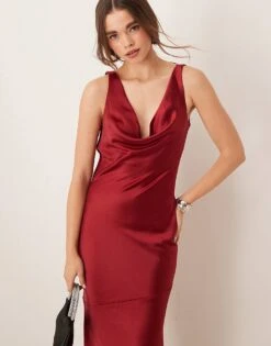 Gina Tricot Crew Neck Knitted Sweater With Wide Sleeves In Dark Wine Burgundy For Women
