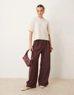 Gina Tricot Short Sleeve Knitted Jumper In Warm White For Women Cream