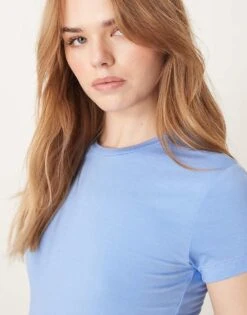 Gina Tricot Soft Touch Jersey Short Sleeve Top With Round Neck In Blue For Women Cornflower Blue